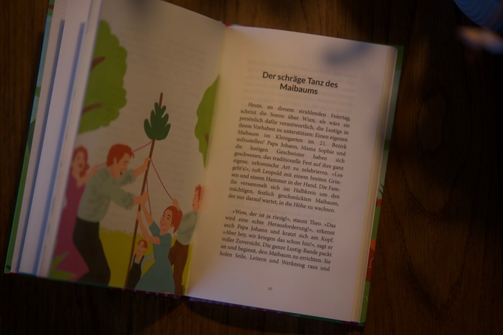 In diesem Buch findet ihr 15 kurze Vorlesegeschichten, die die Abenteuer der in Wien lebenden Familie Lustig auf humorvolle Weise erzählen. Von verschneiten Winterausflügen über einen aufregende Zoobesuch in Schönbrunn bis hin zu lustigen Begebenheiten im Alltag – jede Geschichte bietet eine neue Gelegenheit zum Schmunzeln. Die Erlebnisse der Familie Lustig decken jede Jahreszeit ab und spielen an den verschiedensten Schauplätzen in der österreichischen Landeshauptstadt Wien.